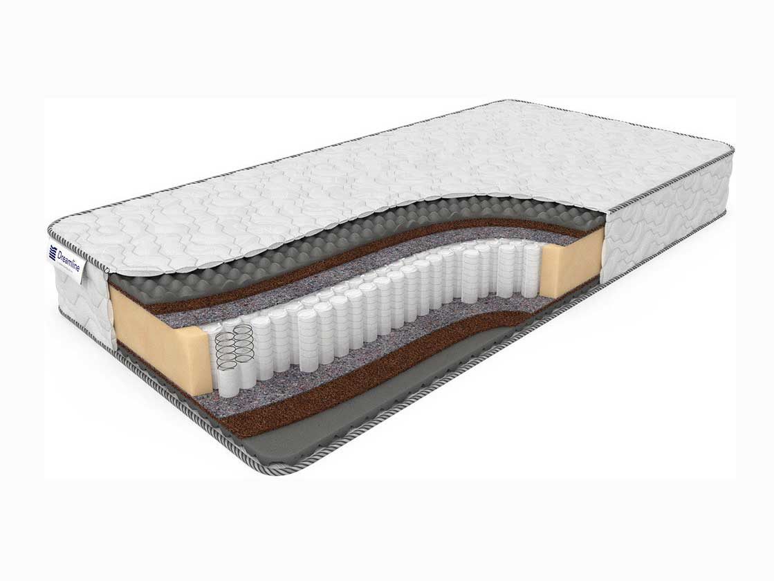 Изоляционным слоем между пружинами и мягкими наполнителями является термовойлок. Нетканый прочный материал предотвращает повреждение наполнителей, продлевая срок службы матраса. После термовойлока идет слой из бикокоса. Он добавляет матрасу необходимую жесткость, усиливая его ортопедические свойства. В ее составе имеется латекс, который защищает от пылевых клещей и размножения бактерий. Последний наполнитель матраса – рельефная пена с эффектом «памяти». За счет своей неровной поверхности создает микромассажным эффект. Пена быстро адаптируется под меняющееся положение вашего тела, не передавливает сосуды, тем самым не нарушает циркуляцию крови.