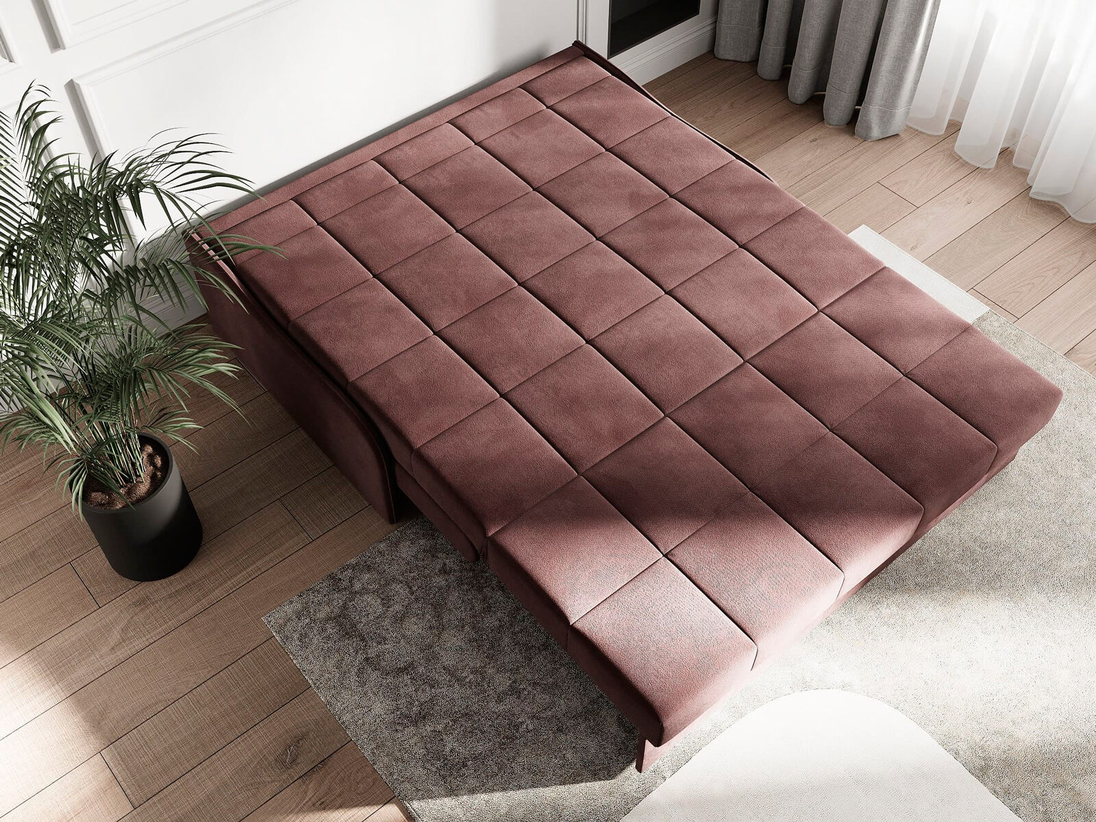 Диван-кровать Glen для сна в современном стиле, с механизмом трансформации аккордеон и беспружинным анатомическим матрасом. Металлический каркас с деревянными ламелями обеспечивает ровную поверхность, как на кровати. Матрас анатомический средней жесткости из высокоэластичной пены Foam обеспечит правильное положение во время сна. Чехол с объемной стежкой в форме квадратов делает диван универсальным для современных интерьеров и интерьеров в стиле минимализм. Благодаря лаконичным узким и низким подлокотникам, механизму разложения диван имеет минимальные габариты в ширину как в сложенном, так и разложенном виде. У Glen два положения трансформации - диван с комфортной посадкой и кровать с полноценным анатомическим матрасом.