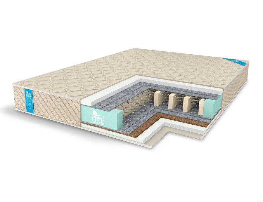 Основную нагрузку на себя забирает зависимый пружинный блок «Боннель». Он состоит из скрепленных между собой спиралей. На спальное место здесь приходится 224 элемента. Блок равномерно распределяет вес по всей поверхности матраса, благодаря чему модель легко выдерживает 160 кг на спальное место.