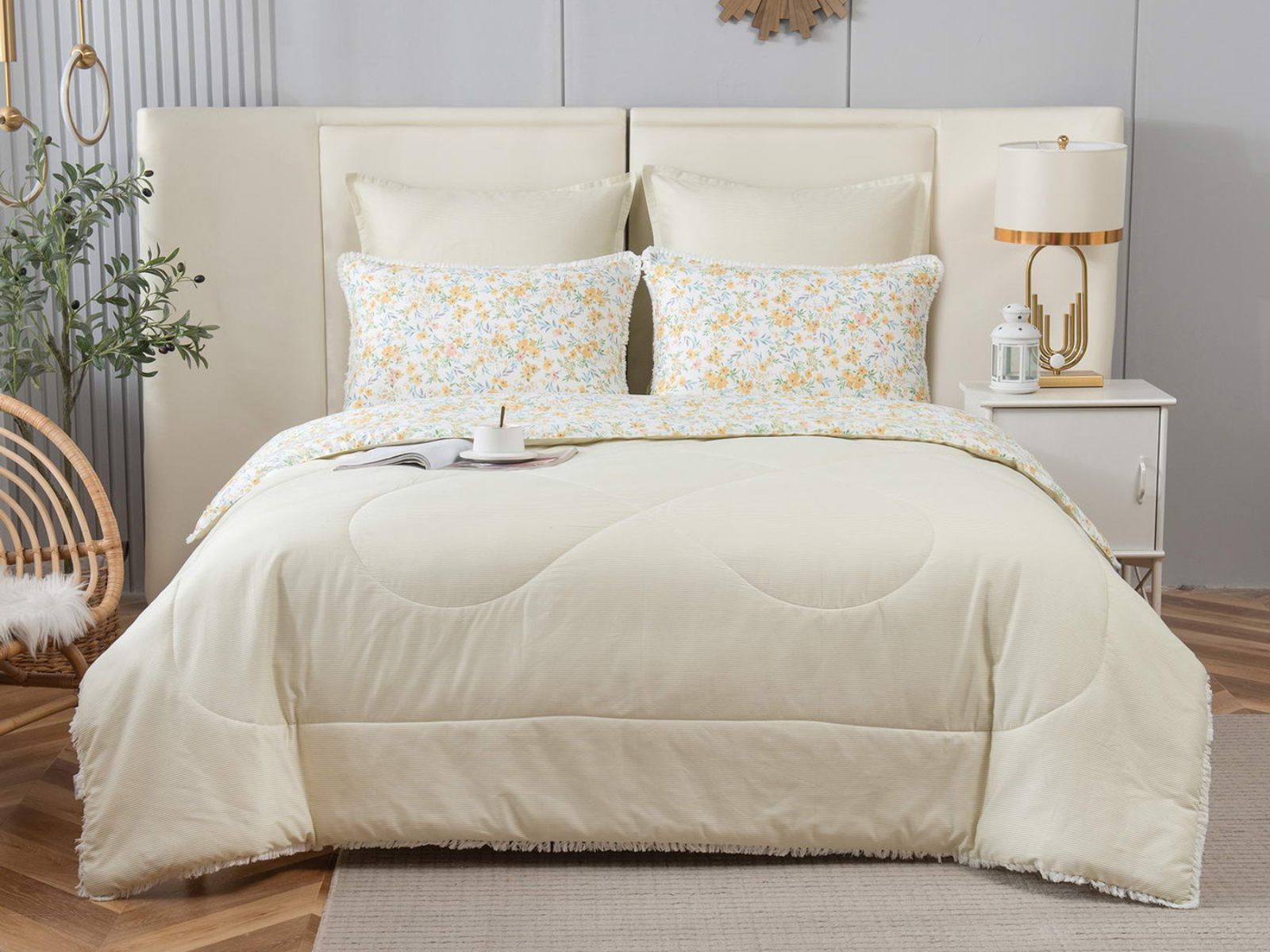В комплекты комфортеров с одеялом Бернадетт входят наволочки, простыня и легкое всесезонное одеяло. Оцените это современное и очень удобное решение, которое идеально подходит тем, кто не любит возиться с пододеяльниками.