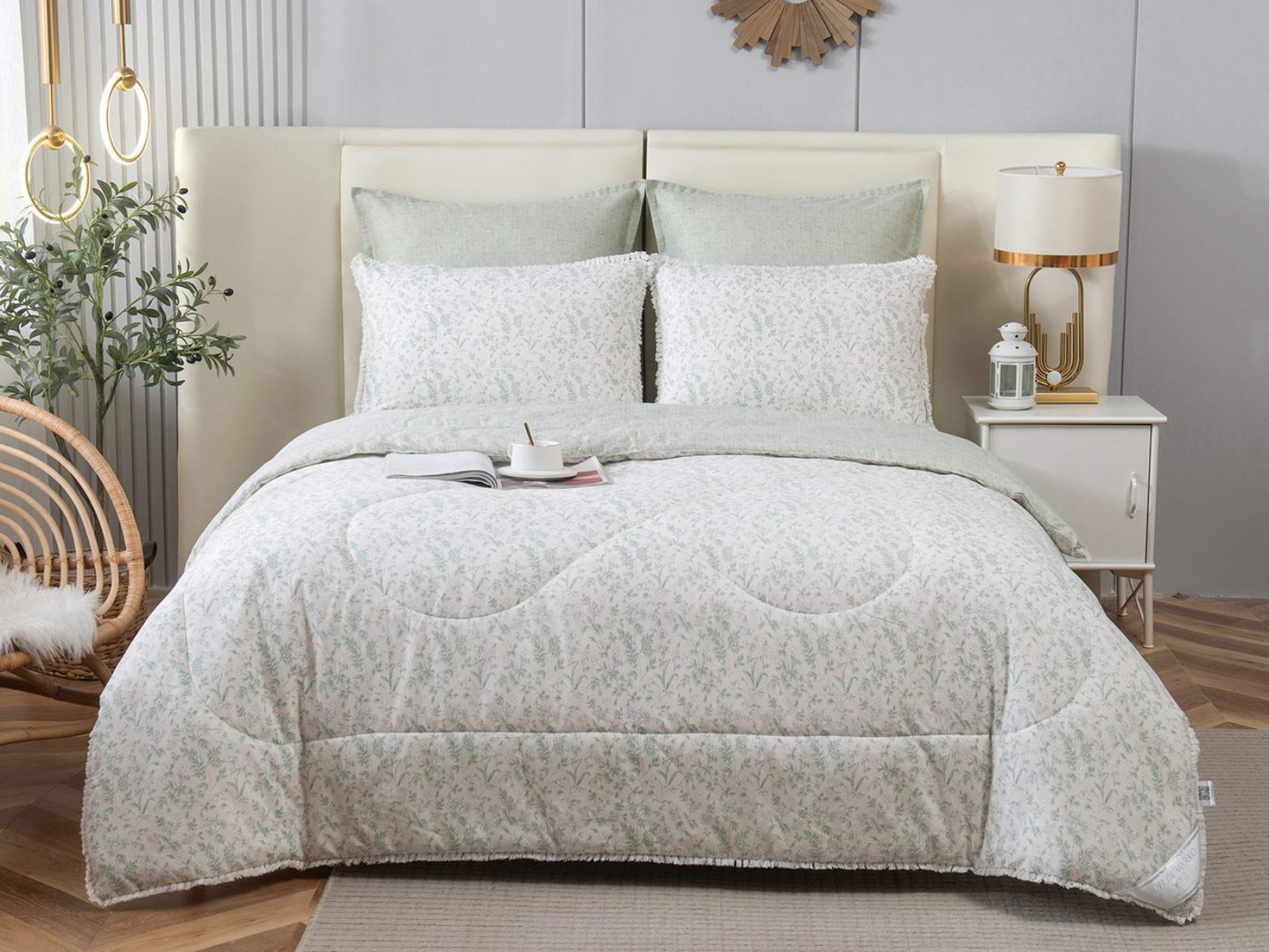 В комплекты комфортеров с одеялом Бернадетт входят наволочки, простыня и легкое всесезонное одеяло. Оцените это современное и очень удобное решение, которое идеально подходит тем, кто не любит возиться с пододеяльниками.