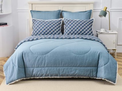 В комплекты комфортеров с одеялом Бернадетт входят наволочки, простыня и легкое всесезонное одеяло. Оцените это современное и очень удобное решение, которое идеально подходит тем, кто не любит возиться с пододеяльниками.