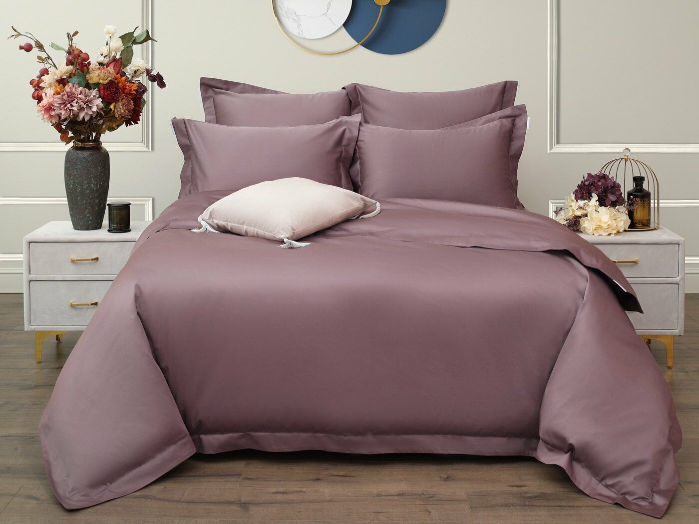 Натуральный состав из 100%-го хлопка обеспечивает гипоаллергенные свойства материала, он охлаждает в жаркую погоду и согревает в холодное время года. Мако-сатин плотностью 300ТС- является тканью класса люкс.