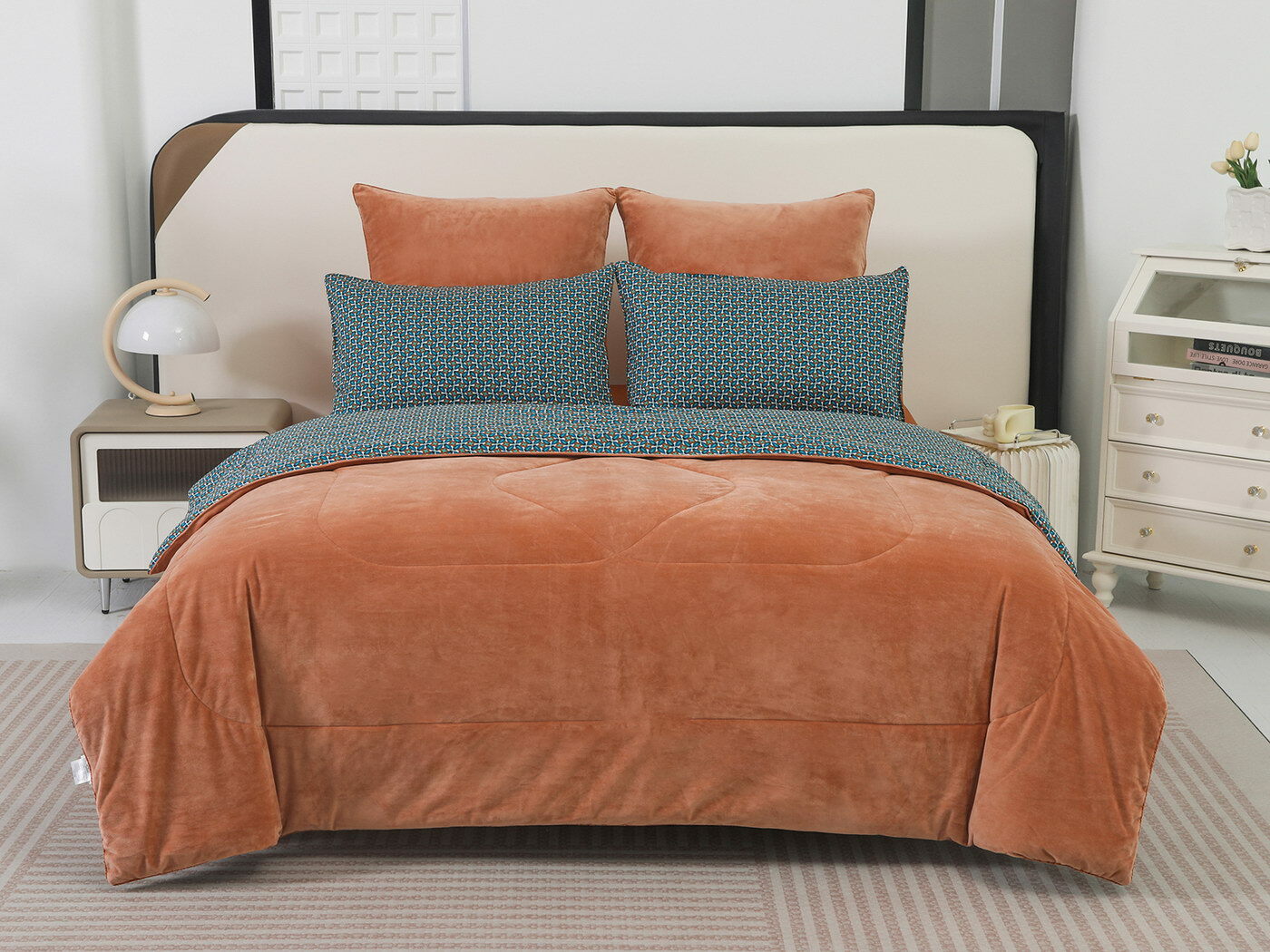 Новая коллекция комплектов «Роберто» с одеялом из однотонного велюра и принтованного сатина.