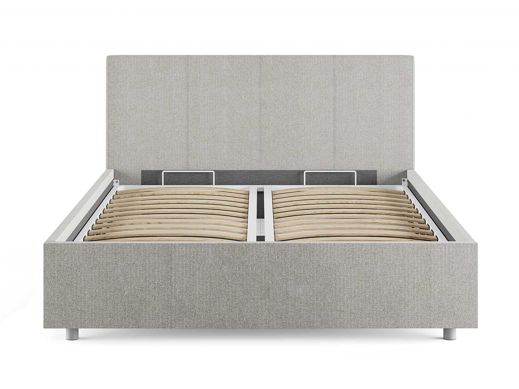 Кровать комплектуется металлическим основанием (без опор), которое имеет 13 рядов встроенных березовых ламелий на каждое спальное место, обеспечивая равномерное распределение нагрузки.