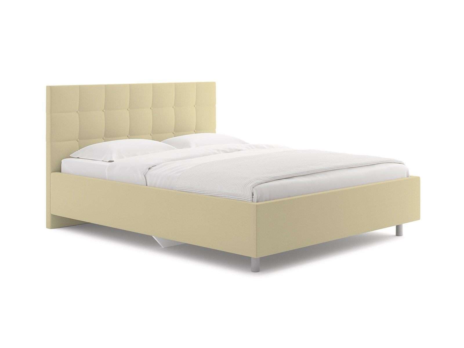 Элегантная интерьерная кровать с изголовьем, украшенным декоративными пуговицами, которые можно заменить на стразы. Модель изготовлена из ДСП.
