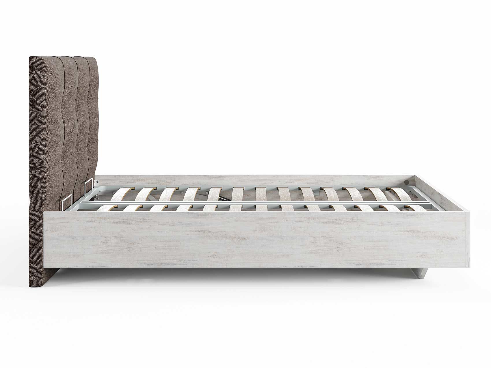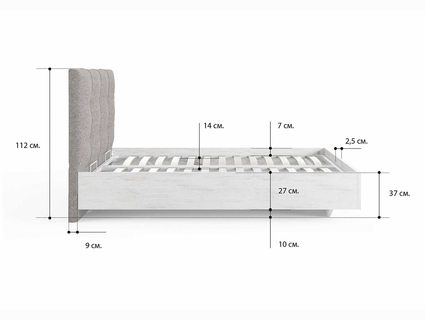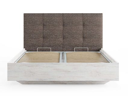 Кровать комплектуется металлическим основанием и подъемным механизмом со вместительным бельевым ящиком. Дно бельевого ящика легко сдвигается для обеспечения уборки под кроватью.