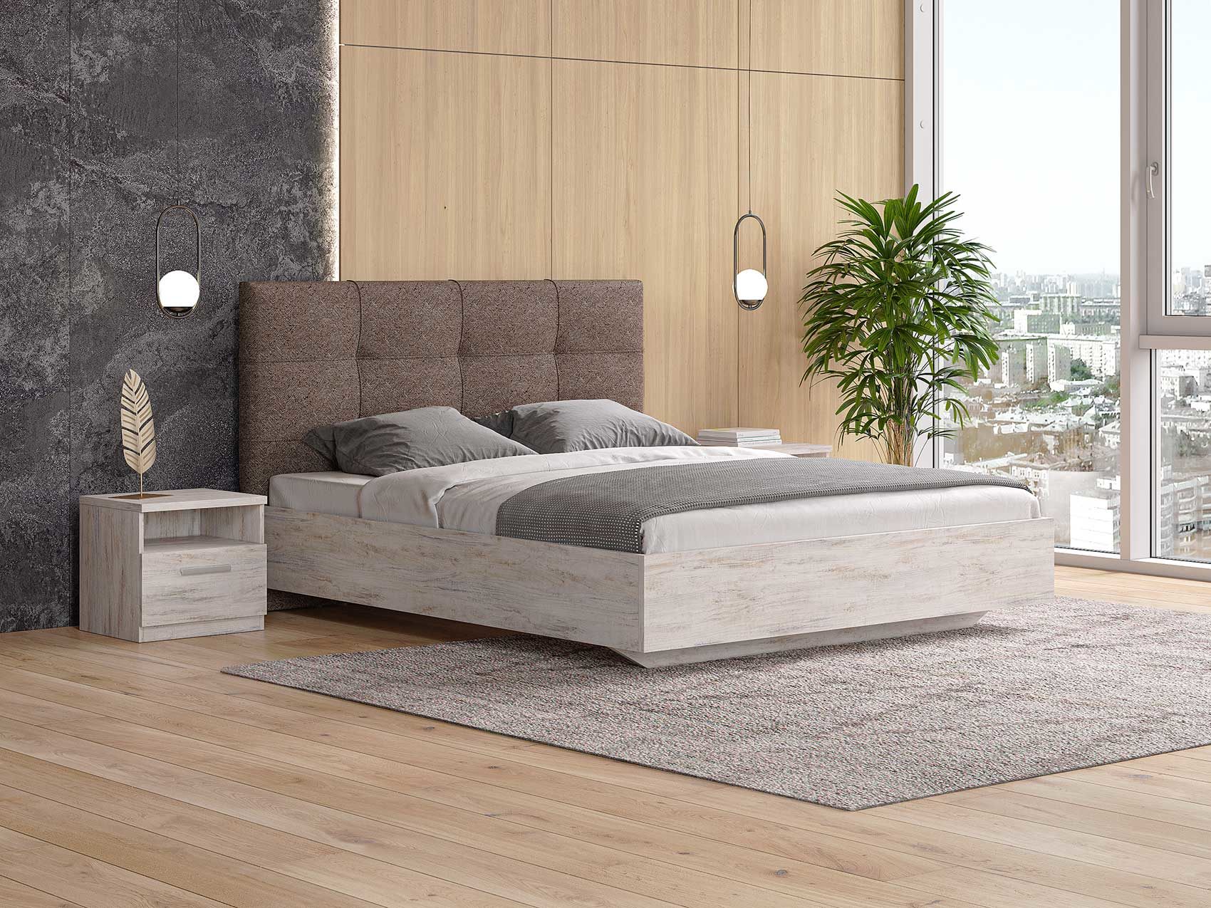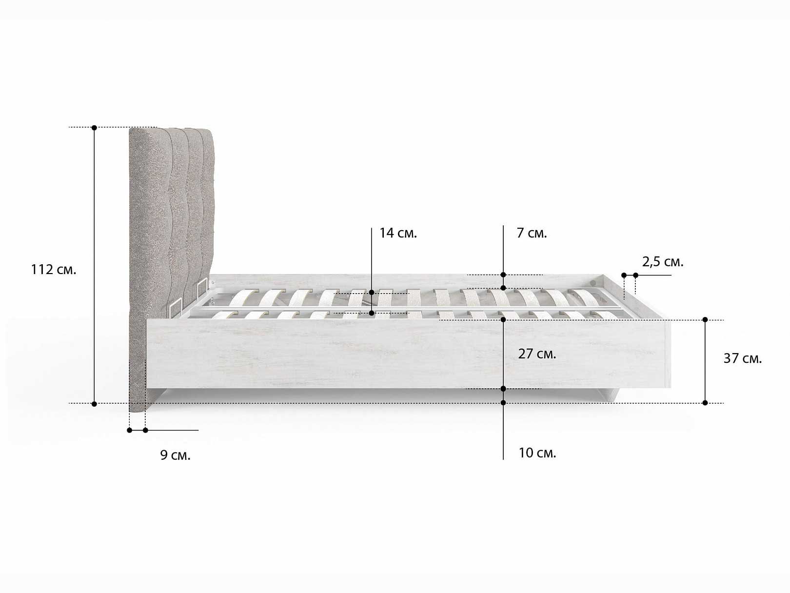ЛДСП. Безопасный и экологичный ЛДСП стандарта Е1 содержания формальдегида. Увеличенная толщина плиты 25 мм делает кровать надежной. Современный и актуальный цвет.