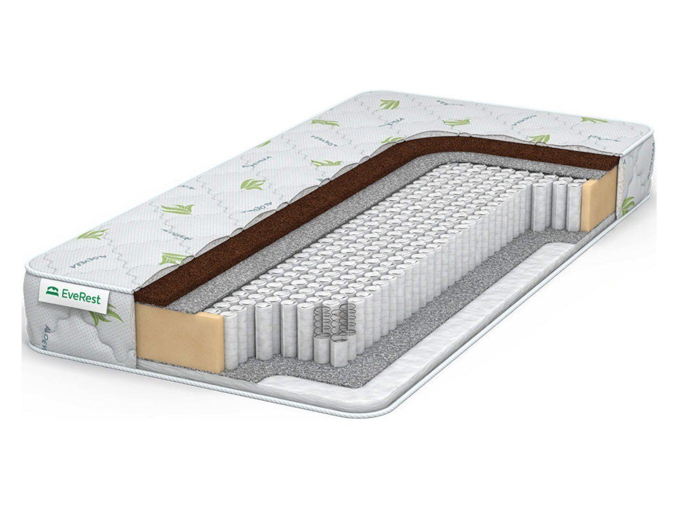 Более жёсткая поверхность реализована с помощью полотна койры кокоса. Плотная плита в толщине 2 см отлично адаптируется под анатомию человека, повторяя естественные линии тела. Это очень важное качество, которое обеспечивает комфортный и здоровый сон у человека. Данный наполнитель всегда гарантирует для позвоночника правильную поддержку.