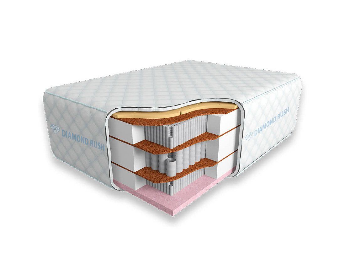 В центре многослойной конструкции представленной модели располагается блок независимых пружин TFK, на 1 кв. м. которого помещается не менее 267 пружин высотой целых 18 см. По всему периметру этого пружинного механизма проложен специальный короб из пенополиуретана, предотвращающий деформацию краев изделия. С каждой стороны блока TFK также находятся пружинные механизмы «Микропакет» с 1000 пружинами на аналогичной площади высотой 13 см, которые также укрепляет короб из ППУ, защищающий пружины от внешнего воздействия. Таким образом, эти три пружинных блока обеспечивают тройной ортопедический эффект и самую надежную поддержку опорно-двигательного аппарат спящего. А для того, чтобы они не воздействовали друг на друга разрушающим образом, не прорывали мешочки и не портились, между ними проложены слои латексированного кокосового волокна толщиной 1 см каждый. Этот наполнитель отличается своей упругостью, долговечностью, износоустойчивостью и экологической чистотой.