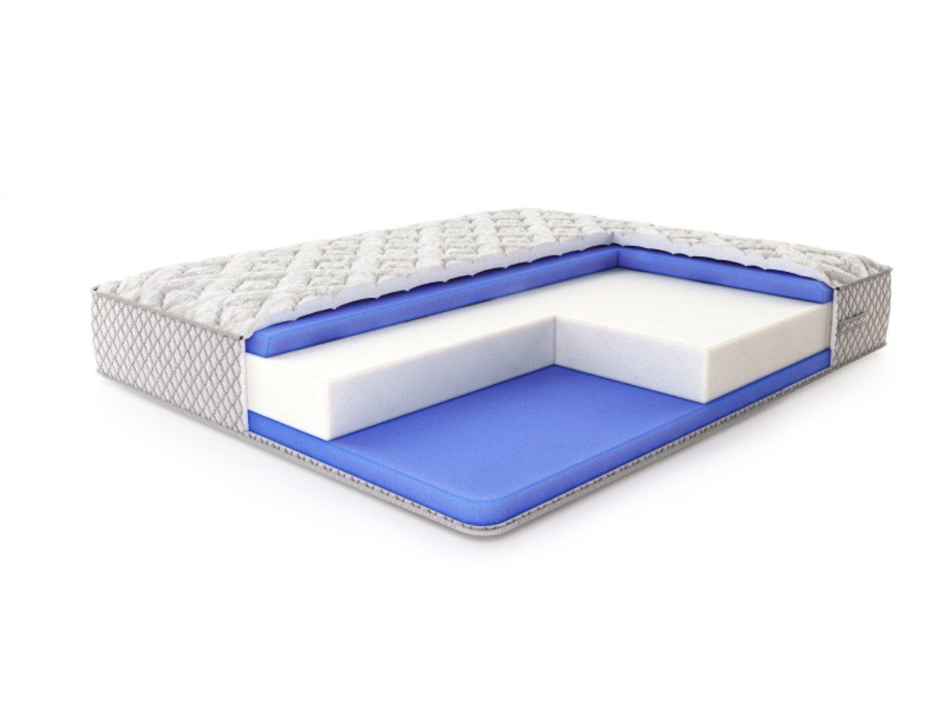 Несъемный изысканный чехол из мягкого трикотажа светло-серого цвета (немаркий и практичный цвет), простёганного на объёмном волокне холлкон 300 гр., ППУ 1 см и спанбонде — приятен тактильно, повышает уровень комфорта. Бурлет матраса выполнен из плотного мебельного жаккарда серого цвета, простеганного на ППУ 1 см — усиление периметра, сохранение геометрии матраса. Декоративные ручки