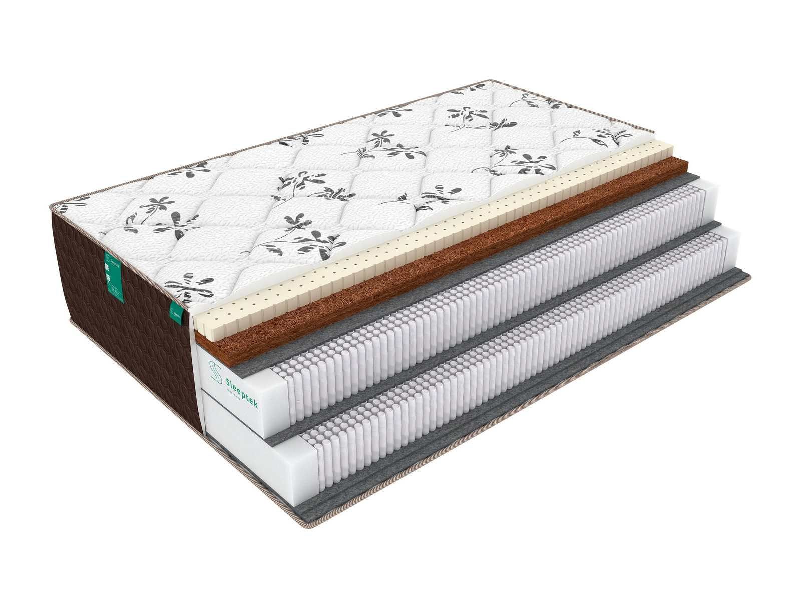 Матрас имеет среднюю жесткость – это универсальная «золотая середина», которая устроит любого. В качестве наполнителей использованы натуральные материалы – койра кокоса и латекс. Койра с пропиткой из латекса обеспечивает спальной поверхности плотность и жесткость, помогая равномерно распределять нагрузку на позвоночник. Это дает возможность быстро расслабиться и снять накопившееся за день напряжение.
