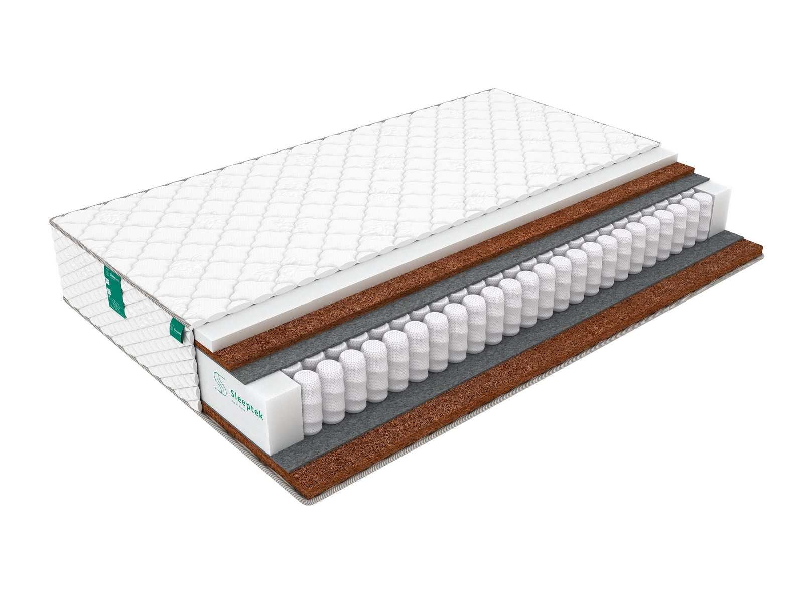 Блок пружин отделен от наполнителей слоями термовойлока,он защищает наполнители от контакта с пружинами и продлевает срок службы матраса.
