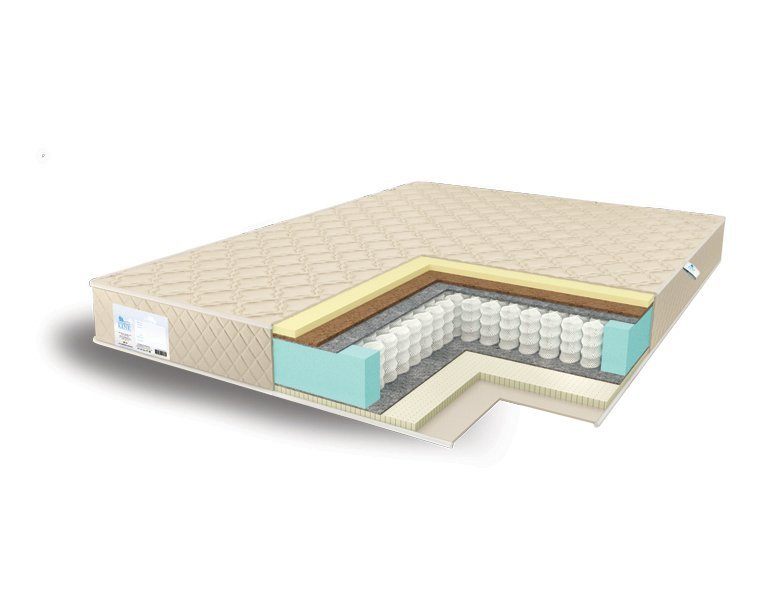 Основанием для матраса является пружинный блок TFK. Это одна из самых практичных и оптимальных по сочетанию формулы «цена – качество» моделей независимых блоков. Стоит отметить частоту элементов внутри матраса, здесь на квадратный метр приходится 250-300 пружин, которые отвечают за корректное положение позвоночника во сне. Их существенное количество позволяет достичь оптимального уровня подстройки под физиологические изгибы спины, что и является ортопедическим качеством матраса.