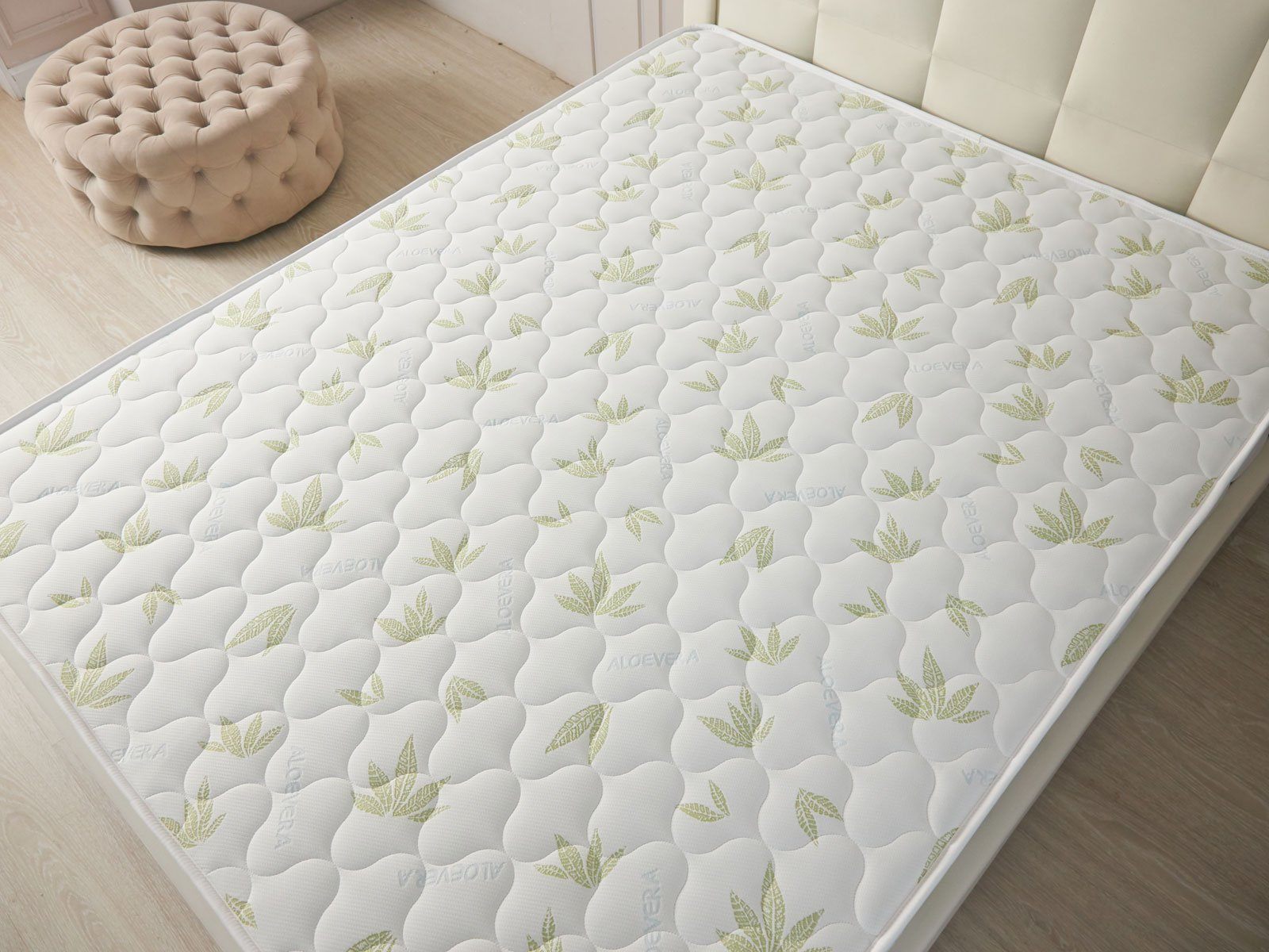 Обивка модели изготавливается из приятного к телу трикотажа «Алое». Фирменная ткань отличается мягкостью, которая усиливается благодаря простёжке на 200 гр синтепоне.