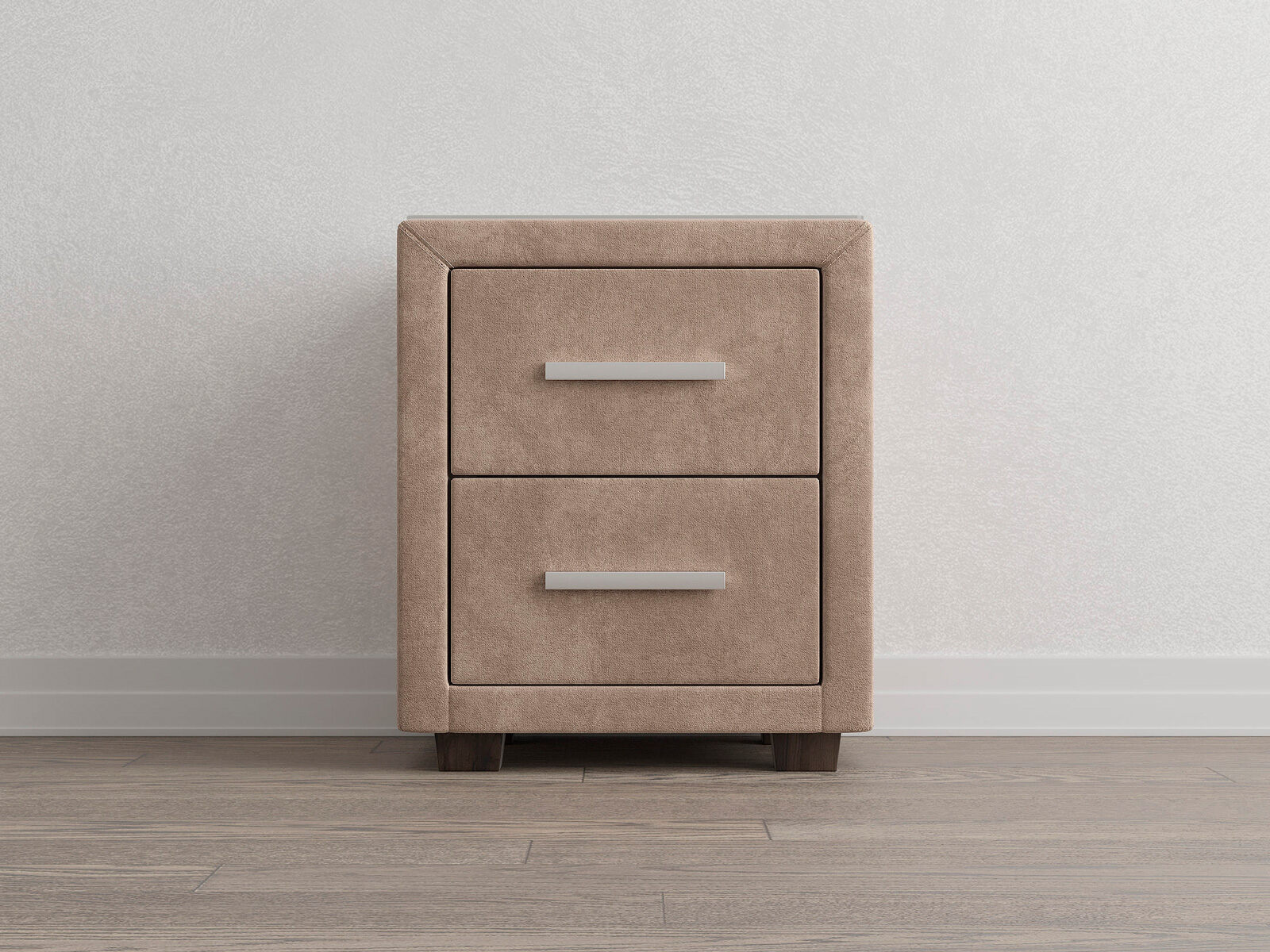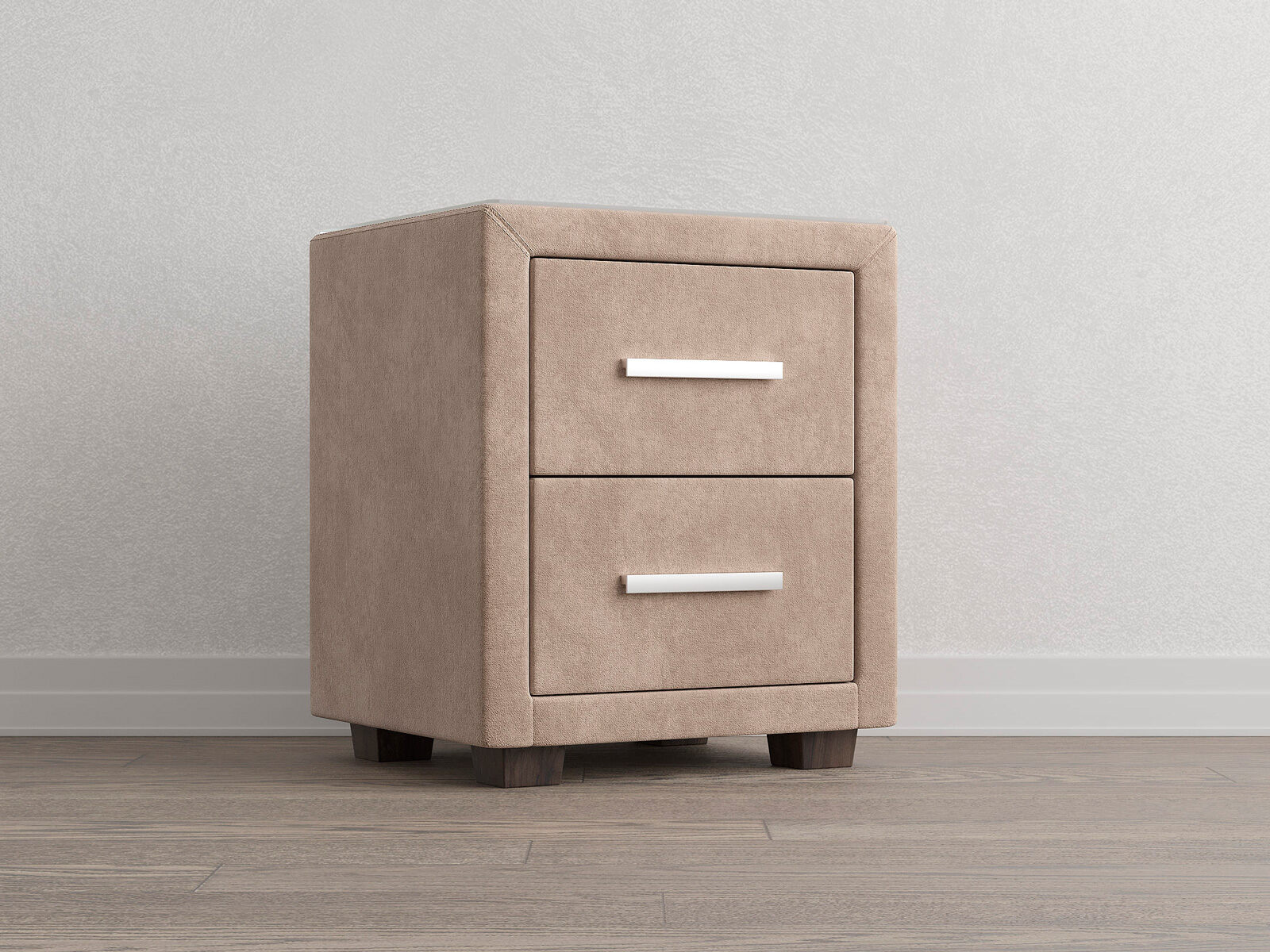 Прикроватная тумба с двумя выдвижными ящиками сочетается с любыми моделями кроватей, органично вписывается в интерьер практически любого стиля. Каркас тумбы выполнен из ДСП. Каркас тумбы и фасад ящиков покрыты обивочным материалом. Для удобства использования и продления срока эксплуатации, рекомендуется использовать стеклянную накладку. Накладка используется в качестве столешницы для тумбы и защищает ее от повреждений и загрязнений. Стеклянная столешница заказывается дополнительно.
