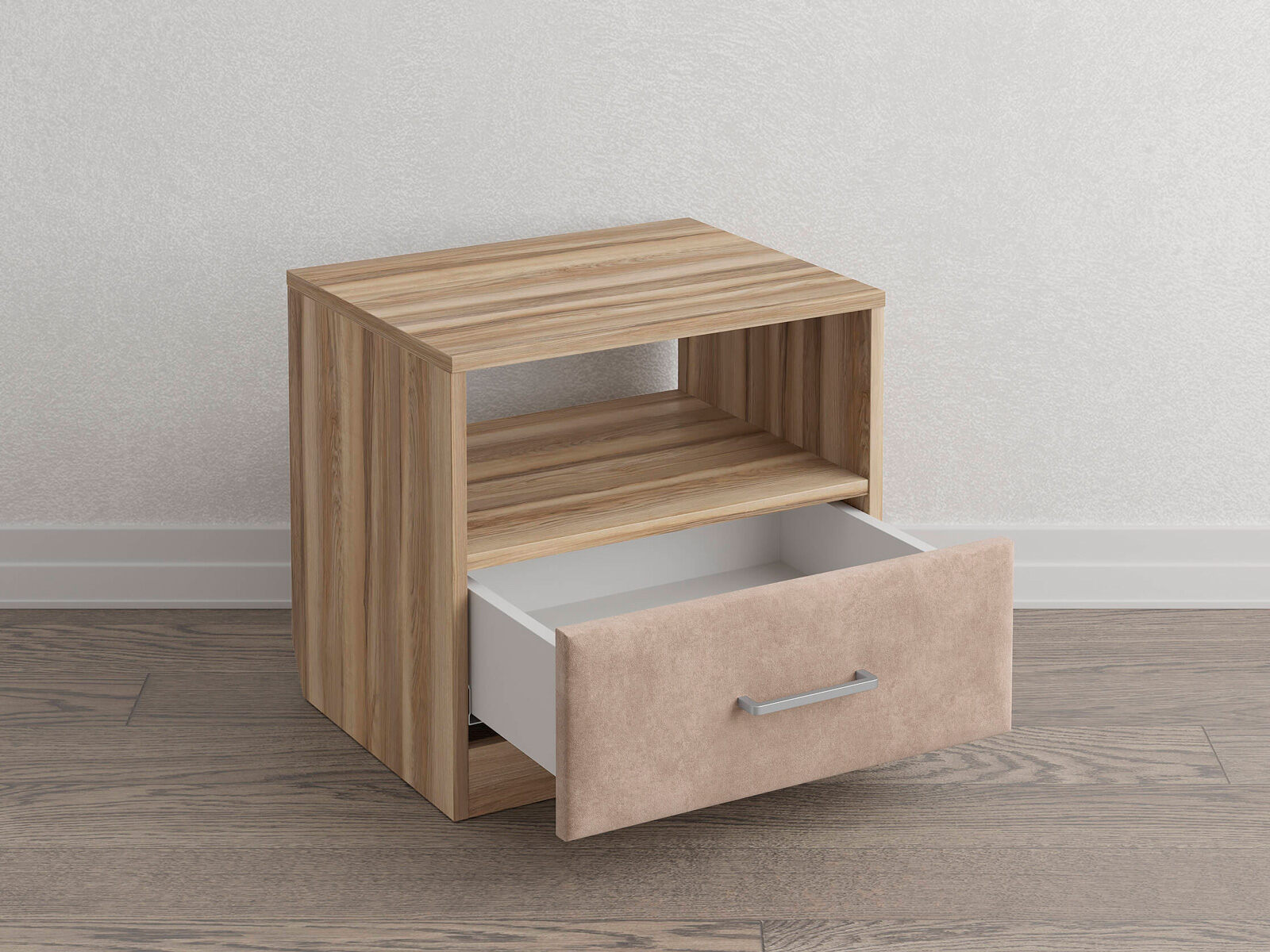 Элегантная комбинированная тумба, сочетающая в себе лаконичность ЛДСП и уют мягких фасадов ящиков, обтянутых тканью. Конструкция тумбы предусматривает открытую нишу для мелочей и вместительный выдвижной ящик с направляющими скрытого монтажа и доводчиками. Корпус из ЛДСП гарантирует долговечность и устойчивость к механическим повреждениям, а мягкие фасады в ткани и изящные металлические ручки добавят уют. Большое разнообразие текстур и цветовых решений для гармоничной интеграции в любой интерьер.